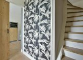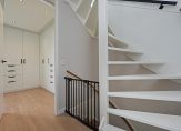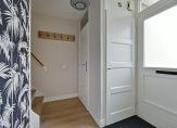 Je komt binnen in een nette hal met meterkast, modern toilet met fonteintje en een mooie houten trap naar boven. Via een stijlvolle houten schuifdeur stap je de lichte woonkamer binnen.