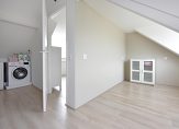 Via een vaste trap bereik je de verrassend ruime tweede verdieping. Op de voorzolder is plek voor de cv-installatie, de mechanische ventilatie en de wasmachine en droger.