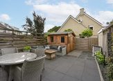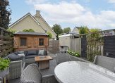 Keurig afgewerkte en uitgebouwde eengezinswoning met stenen én houten berging en zonnige tuin op het zuiden