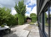 Aan de voorzijde beschikt u over een ruim terras van ca. 13,00 x 5,60 meter. Een heerlijke plek om van de zon en het uitzicht te genieten! Dit terras is voorzien van een houten berging van ca. 5 m2. Aan de achterzijde treft u tevens een klein terras. Beide terrassen zijn bereikbaar door middel van een schuifpui.