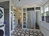 De bijkeuken/ achteringang biedt onder andere plaats aan de wasmachine,droger, HR-combiketel, wasbak, wijnklimaatkast, grote voorraadkast en een extra koel-/vriescombinatie.