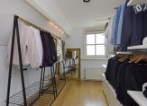 Overloop met toegang tot de ruime ouderslaapkamer aan de voorzijde met hoog plafond, airconditioning, elektrische rolluiken en een inloopkledingkast. Separaat toilet.