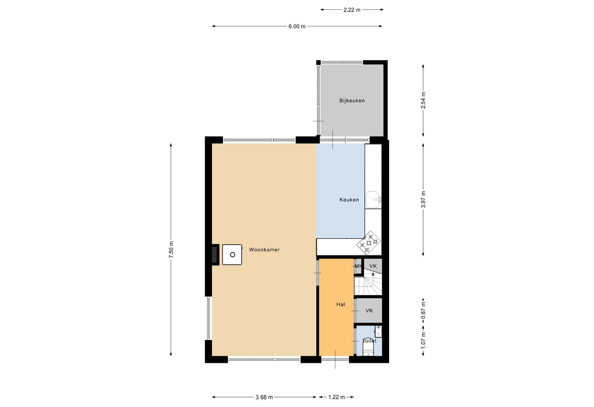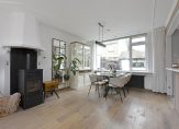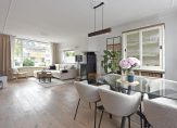 Je komt binnen in de hal met trapopgang, een praktische kelderkast en een ruim toilet met wandcloset en fonteintje. De lichte doorzonwoonkamer is voorzien van een sfeervolle massief houten vloer en een gezellige kachel voor de koudere maanden.
