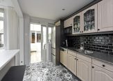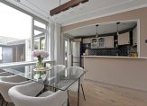 De open keuken beschikt over een barretje, een koelkast, oven, magnetron, 5-pits gaskookplaat en afzuigkap. Aansluitend vind je de bijkeuken, waar je ruimte hebt voor je wasmachine, droger en extra opslag.