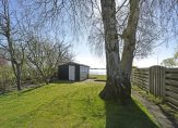 De achtertuin, gelegen op het zuidoosten, is ca. 43 meter diep en 8,5 meter breed. Direct achter de woning bevindt zich een stenen schuur met elektra en een bergvliering. Aan de achterzijde van deze schuur is een elektrisch zonnescherm gemonteerd, zodat u desgewenst in de schaduw kunt zitten.