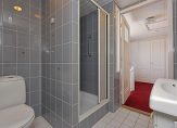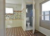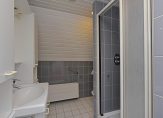 De bijkeuken is bereikbaar vanuit de keuken en biedt ruimte voor de wasapparatuur, de cv-ketel, het toilet en een badkamer met douche.