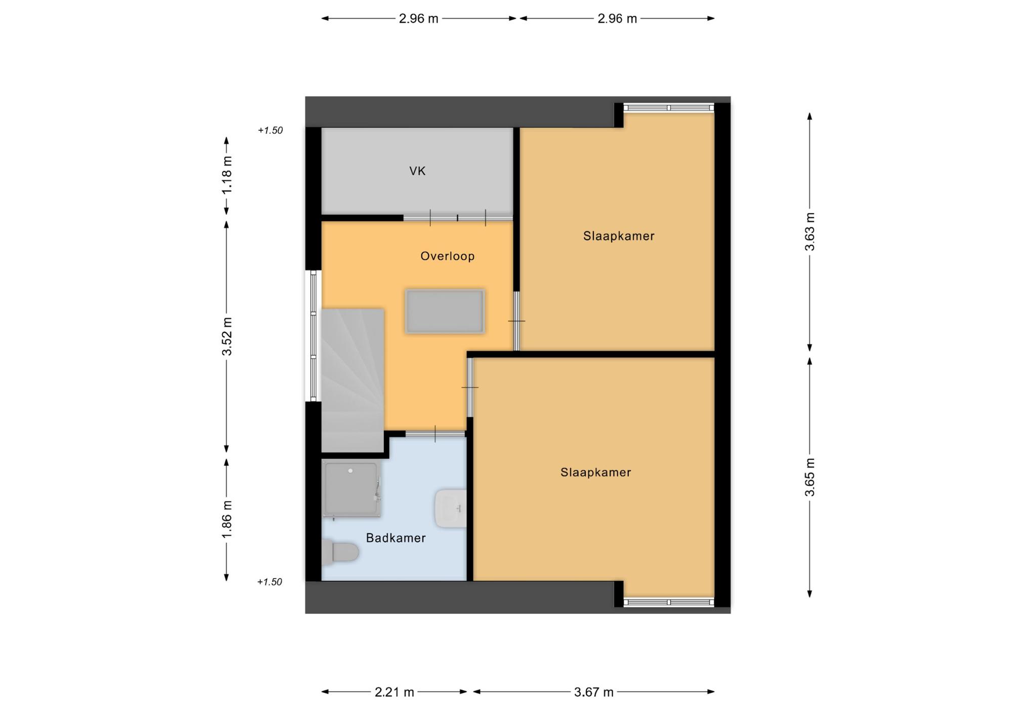 De tweede verdieping is bereikbaar via de vlizotrap. Hier vindt u de mechanische ventilatiebox en toegang tot de slaapkamer op deze verdieping. Deze kamer is voorzien van een dakraam, waardoor er volop natuurlijk daglicht binnenkomt.