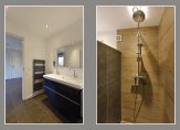 • Grote, comfortabele badkamer met inloopdouche, ligbad, dubbel wastafelmeubel en vloerverwarming (2018)
