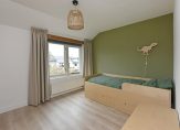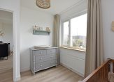 De twee lichte slaapkamers aan de achterzijde, gerealiseerd in 2018, bieden een prachtig uitzicht op de diepe tuin.
