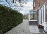 De tuin is groen aangelegd met mooie bomen en struiken en grenst aan een ruime, afsluitbare parkeerplaats. Hier is voldoende ruimte voor auto’s, aanhangers of zelfs een extra schuur of loods.