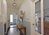 Entree met meterkast, zijraam, garderobehoek en een glas-in-looddeur naar de hal. De lange hal heeft een fraaie trapopgang met twee hoge zijramen en een karakteristieke granitovloer, die ook in de entree ligt. Hier is ook het modern afgewerkte toilet met vrijhangend closet en een fonteintje.