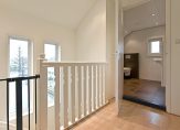 De statige overloop heeft twee prachtige ramen in de trapopgang en geeft toegang tot drie slaapkamers met vaste kasten.