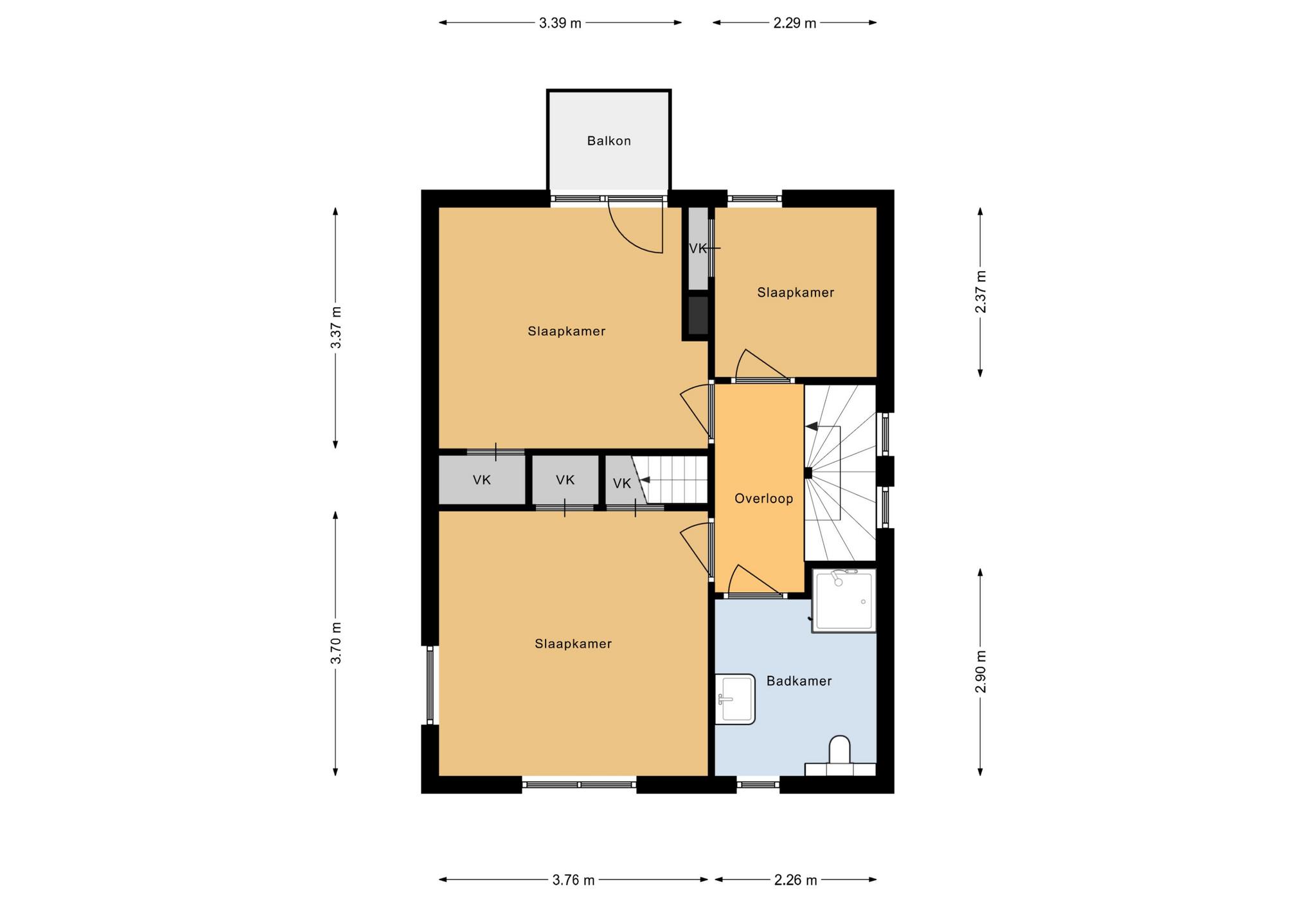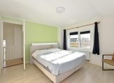 Twee slaapkamers liggen aan de achterzijde, waar ook een klein balkon aanwezig is. De derde slaapkamer aan de voorzijde beschikt over een extra zijraam.