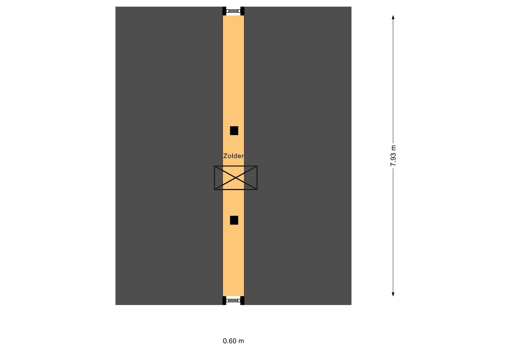 Een smalle vaste trap leidt naar de zolderverdieping, die is ingericht als bergzolder. Hier zijn twee kleine ramen en een geïsoleerd dak.